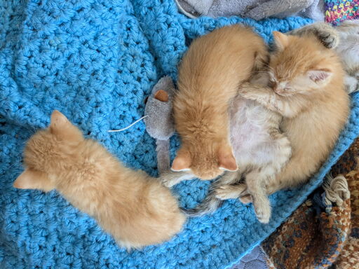 18·6 months agoThree are orange and one is brown. The brown one, however, is a little older and appears to be from a different litter.