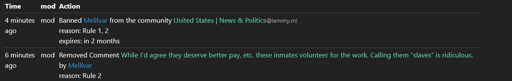 The modlog says for being a bot.