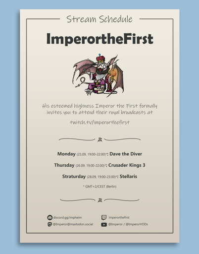 I stream on https://twitch.tv/imperorthefirst and run https://www.youtube.com/@Imperor dedicated to longform gameplay of grand strategy, 4X and TTRPG games. My main goal is helping people get into more complex games!