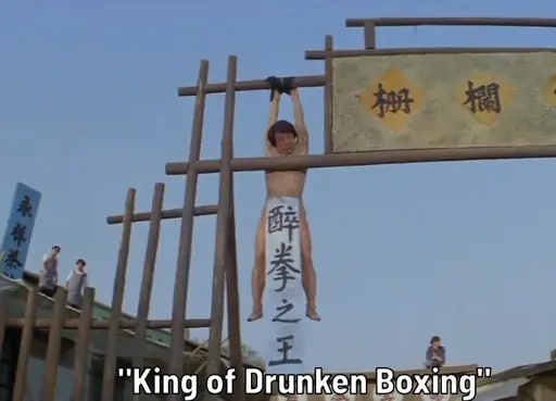 In hindsight, that could look a bit like a corpse, so let me say that’s Jackie Chan in Drunken Master 2 (1994) and his character there is alive. Just passed out after a night of heavy drinking, after which the baddies humiliated him by leaving him like this.